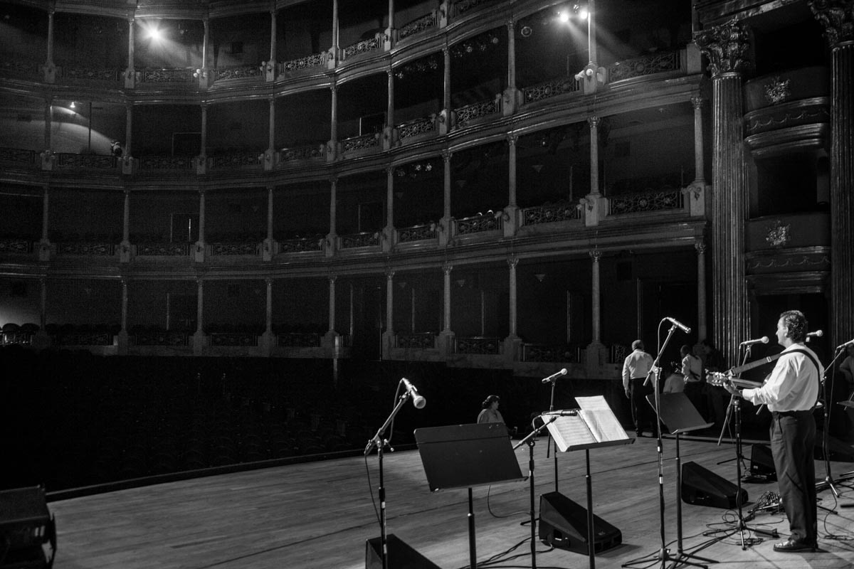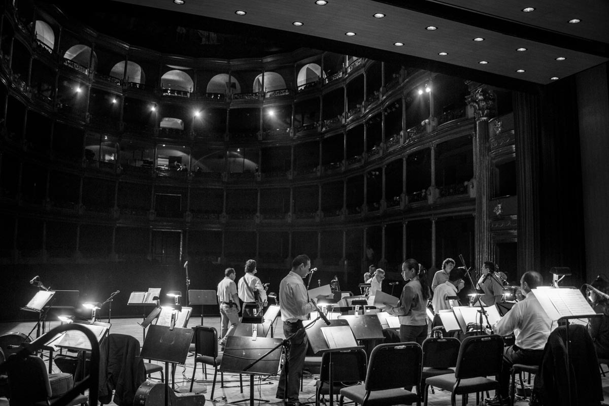 Musicians prepare before a show in Teatro Degollado.