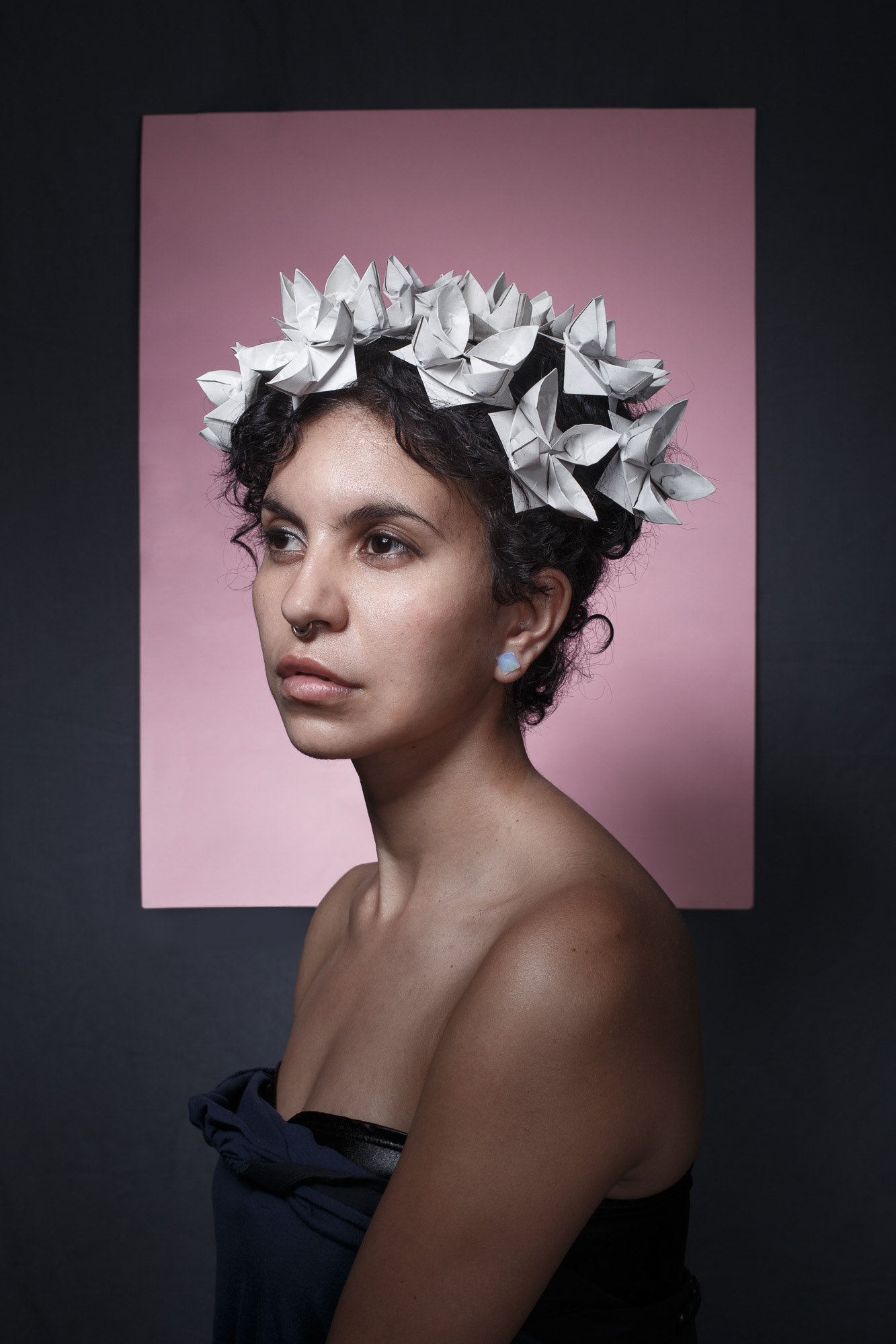 A veces al observar a una persona imagino un retrato. A Taslim la imaginé con un tocado de flores de origami. El retrato es para mí otra forma de querer a las personas, similar a cuando le escribes una canción a alguien.